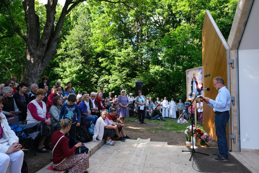 A helyszín már két éve adott, hiszen 2023. december 8-án, Istennek és sok-sok ember kitartó munkájának és imájának hála, Erdő Péter bíboros, prímás megáldotta a Boldogságos Szűz Mária Világ Győzelmes Királynője engesztelő kápolnát a Szent Anna-réten.