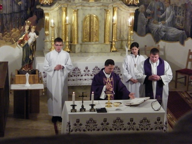 Déri Péter esperes-plébános a szentmise bevezetőjében elmondta, hogy abban a templomban gyűltek össze, ahova 125 évvel ezelőtt egy fiatal házaspár elhozta elsőszülött gyermekét, hogy megköszönjék az Úristennek áldását, és a keresztség szentsége által az újszülöttet az Isten gyermekévé és a Szentlélek templomává tegyék.