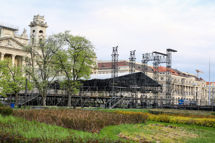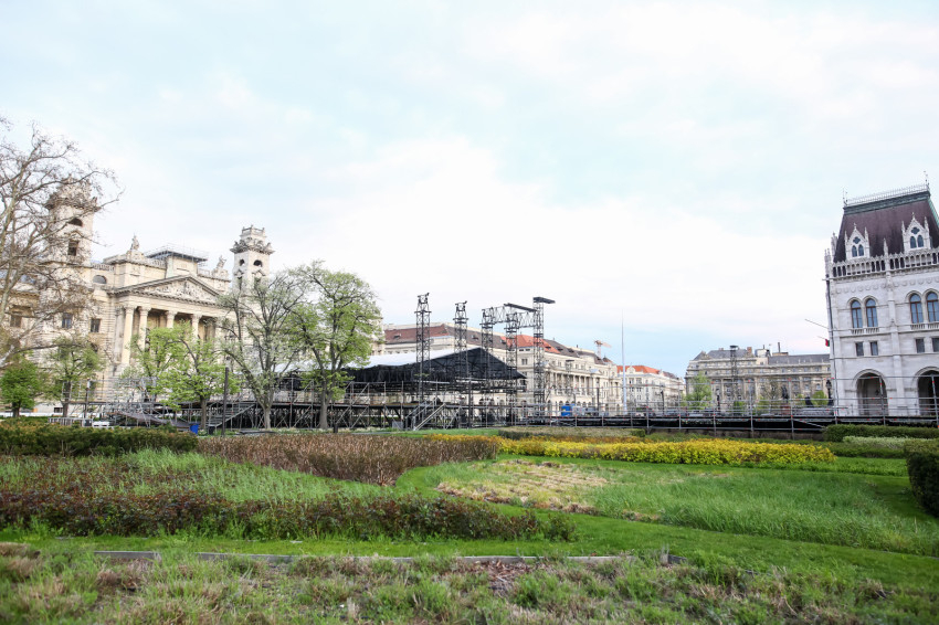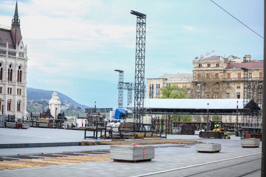 Már két hét sincs Ferenc pápa érkezéséig, nem véletlen, hogy az előkészítő munkálatok is egyre előrehaladottabb állapotban vannak. A Kossuth téren épül az a fémállványzat, emelvény, mely helyet ad a Ferenc pápa látogatásának harmadik napján, április 30-án 9.30-kor kezdődő szentmisének.