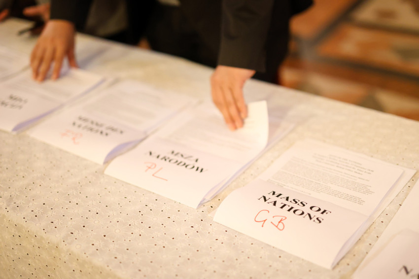 A bazilikát megtöltő külföldiek számára különböző idegen nyelveken is kinyomtatták a liturgia szövegét és a felolvasott szentírási részeket.