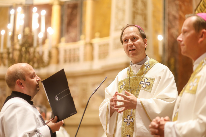 Mohos Gábor a szentmise végén köszönetet mondott különösen Papp Tamás atyának, aki a főgyházmegyében a soknyelvű pasztorációban szolgáló papokat összefogja.