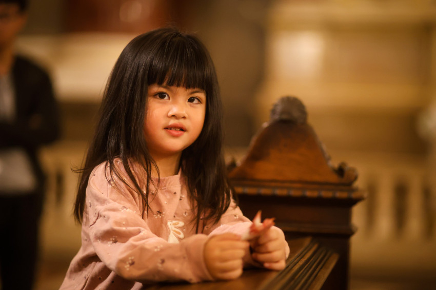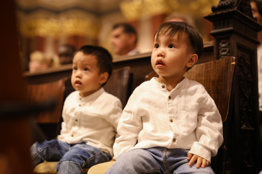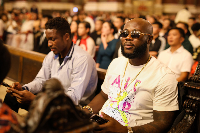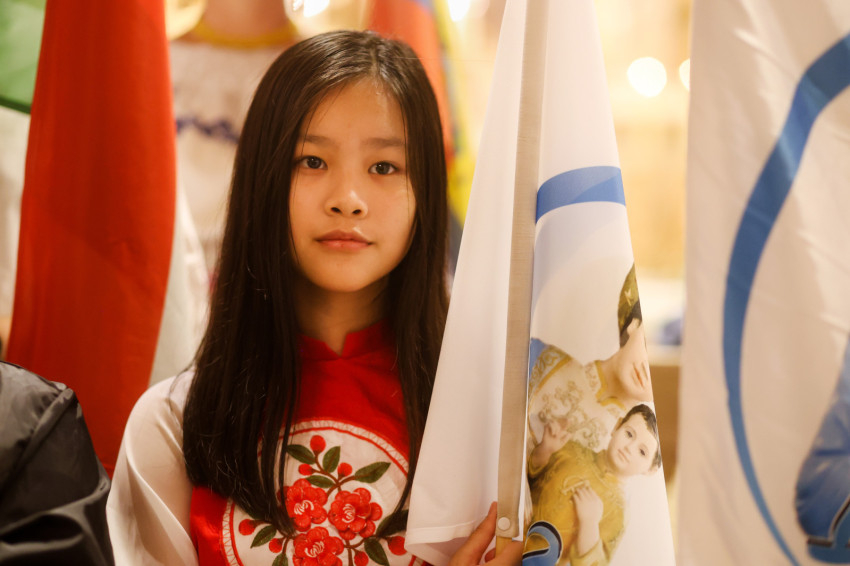 Népviseletbe öltözött hívek vitték a kenyeret, a bort, valamint gyümölcsöket és virágot az oltárhoz, miközben vietnámi gitáros kórus énekelt. A szentáldozás alatt egy spanyol kórus énekelt latinos hévvel.