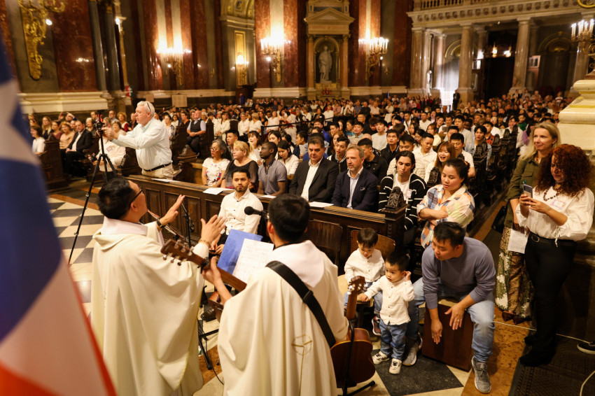 Papp Tamás atya kérdésünkre elmondta: a szentmisére kilenc nyelven készítettek lapokat. Minden nyelvi közösséggel foglalkozik egy lelkipásztor. A spanyol közösségben nagyon sokan vannak, hozzájuk tartoznak a spanyol ajkú latin-amerikaiak is. A német közösség a Fő utcában, a francia Remetekertvárosban, az olasz szintén a Fő utcában, de a kapucinusoknál, a lengyel közösség Kőbányán az Ó utcában, a horvát a Szent Mihály-templomban jár össze. A vietnámi nagy közösséget a szaléziak látják el, a nyolcadik kerületi Tömő utcában kaptak templomot a főpásztortól ugyanúgy, mint nemrég a kínaiak Kőbánya-MÁV telepen, a koreaiak pedig az Etele térnél. Az arab katolikusok Szíriából jöttek és a francia közösséghez tartoznak.