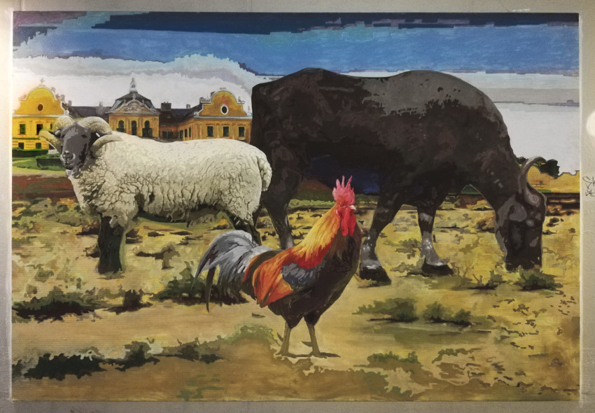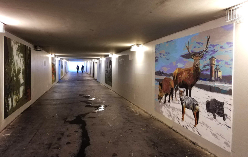 S ha már szót ejtünk erről, meg kell említenem a legutóbbi falképeket is, amelyek a vasúti aluljáróba kerültek az elmúlt évben, szintén Majoros István munkájának köszönhetően. Elmondhatjuk, hogy igazán hangulatosra sikerült ez a mintegy húsz kép. A festő láthatóan nagy kedvvel készíti ezeket a műveket, és nincs híján a fantáziának sem. Az egyik legszebb a nagytétényi kastély előtti teret ábrázolja, ahol egy kakas, egy kos és egy egészséges szarvasmarha nézeget és legelészik éppen.