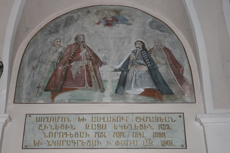 Eredetileg kőfal vette körül: a falba építve kápolnát alakítottak ki a Szent Kereszt tiszteletére. A vallásos örmény asszonyokat összefogó Szent Anna Társulat 1732-ben kápolnát építtetett a templom jobb oldalán: benne Szent Anna és Joáchim tiszteletére oltárt készíttettek.