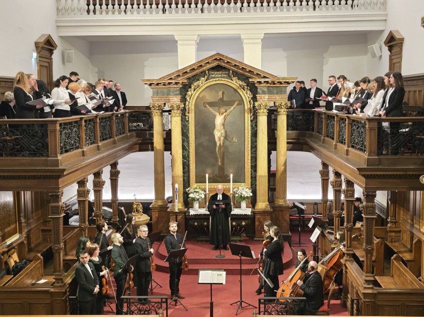 A turné Bécsben folytatódott, ahol a kórus és zenekar vasárnap délelőtt a lutheránus templomban látott el egyházzenei szolgálatot. Az istentiszteleten Moritz Hauptmann, James Chepponis, Halmos László, Felix Mendelssohn-Bartholdy, Kocsár Miklós és Georg Friedrich Händel művei mellett Ruzitska György miserészletei is felcsendültek, tovább erősítve a történeti repertoár sokszínűségét. Kolozsvár és Bécs kapcsolódása a templom orgonistájának, Windhager Geréd Erzsébetnek köszönhető, aki az együttest nagy szeretettel fogadta és szeretetvendégségben is részesítette a helyi kórustagok segítségével.