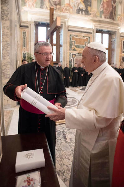 Veres András püspök, a Magyar Katolikus Püspöki Konferencia elnöke egy szép Bibliát, én pedig Székely János püspökatyával egy cigány Bibliát adtam át Ferenc pápának. Néhány éve megvan már a teljes lovári nyelvű szentírásfordítás, ezt köttettük be szép fehérbe, a borítóra pedig rákerült a Szentatya címere. A pápa nagy érdeklődéssel forgatta. Minden nyelvnek a történelmében nagy mérföldkő a bibliafordítás, hiszen ez azt jelenti, hogy a legfinomabb vallási fogalmakra is sikerült valamilyen kifejezést találni. Ez ad lehetőséget arra, hogy ezután a szentmise liturgiája is elkészüljön ezen a nyelven. A pápa buzdított is bennünket ebben a munkában.