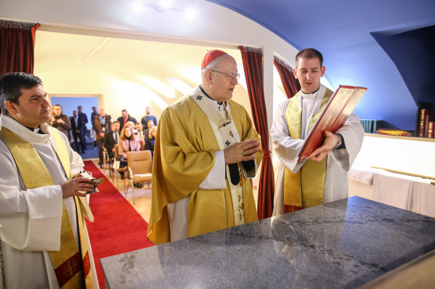 Nagy örömmel áldom meg ma ezt az új, katolikus házikápolnát, amelyben valószínűleg – a kápolnaigazgató atyával egyeztetett rend szerint – más keresztény közösségek képviselői is lehetőséget kapnak liturgia végzésére. Van értelme annak, hogy külön áldással szakítsunk ki egy darabot a profán térből az imádság és az Istentisztelet számára. A közösségnek ugyanis széles körben átérzett és elfogadott világnézeti alapokra van szüksége. Erre építve rendezték maguk körül a régiek a teret és az időt. A szent helyek jelzik, hogy a valóságnak van egy magasabb szintje is. A templomról, szerényebb esetben a kápolnáról is azt mondjuk, hogy az Isten háza.