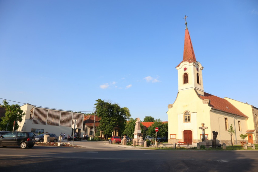A település középpontjában, a templomra néző telekre épült az új plébánia, mely a plébánosi lakás mellett közösségi tereket, hittantermet is tartalmaz. Falvai Balázs, Török Dávid, Balázs Mihály, Nagy Márton tervezők a keskeny telken megtalálták a megoldást: a szükséges funkciók elhelyezését biztosító épületrészek „U” alakban belső udvar köré csoportosulnak. A nagy közösségi tér a régi sváb pajták mintájára a hosszan elnyúló telekrészen helyezkedik el. Wilheim Péter kiemelte a közösségi együttlétekre alkalmas nagy belső kert jelentőségét, és reményét fejezte ki, hogy az új épületben otthonra talál a plébánia élő közössége.