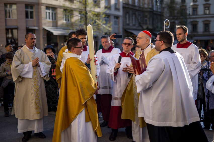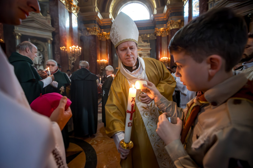 Miután a bazilikában a húsvéti gyertyáról szétosztották Krisztus világosságát, meggyúltak a fények, felcsendült a húsvéti örömének, az Exultet, mely szövegéből megértjük, hogy a gyertya fénye miként szimbolizálja a feltámadást és a megváltást.