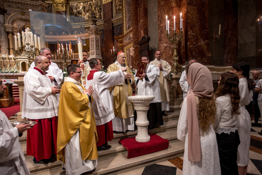 A szentbeszédet követően Erdő Péter megáldotta a keresztvizet, megkeresztelt három felnőtt nőt, majd kiszolgáltatta nekik a bérmálás szentségét, ahogy az már az ősegyházban is gyakorlat volt. A jelenlévő hívek pedig megújították keresztségi fogadalmaikat.