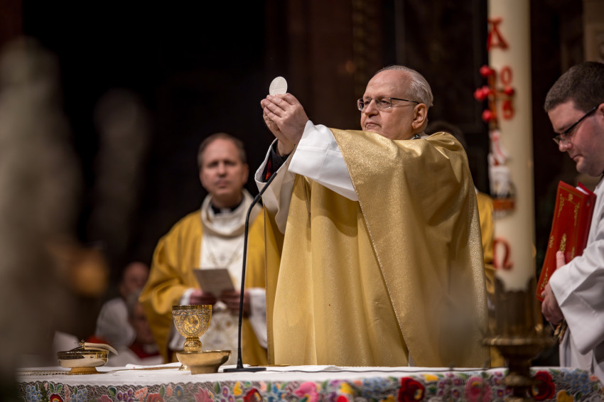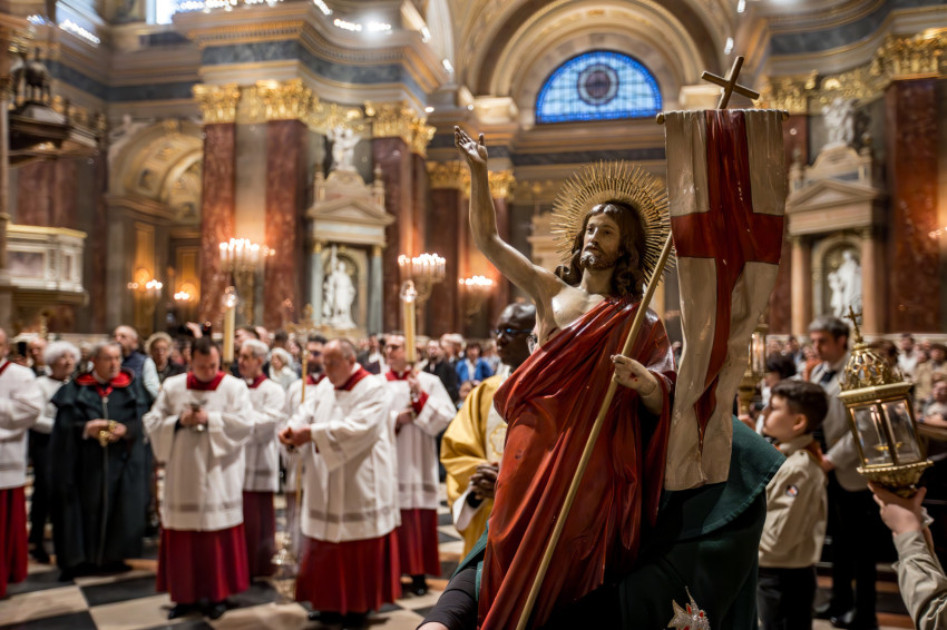 Erdő Péter bíboros szentbeszédében kiemelte: A húsvét titka átértelmezi egész életünket. Megmutatja, hogy életünk súlypontja az örökkévalóságban van, és hogy itt, a földön erre tekintettel kell gondolkoznunk, terveznünk és élnünk.