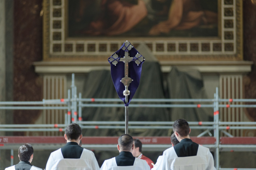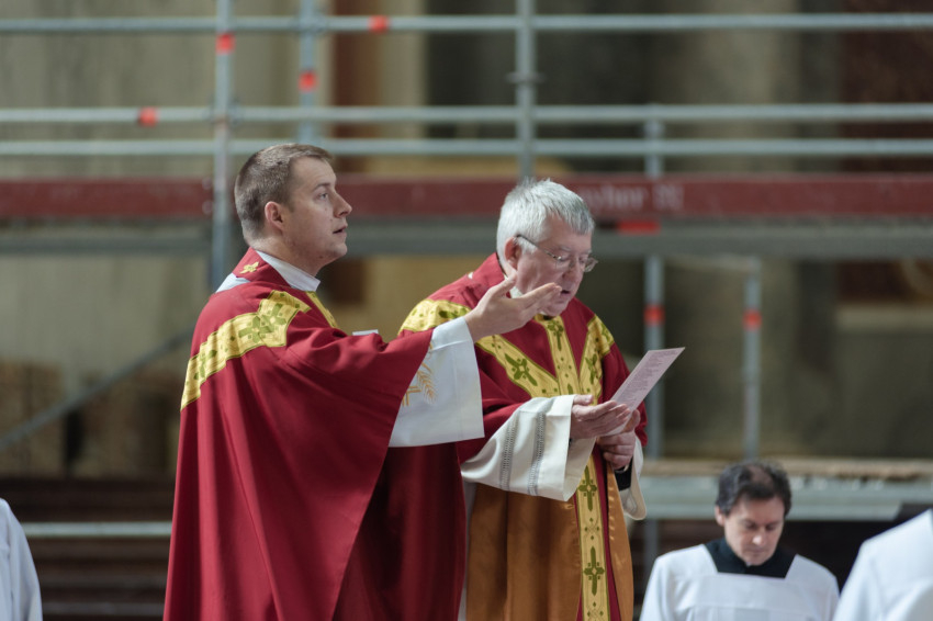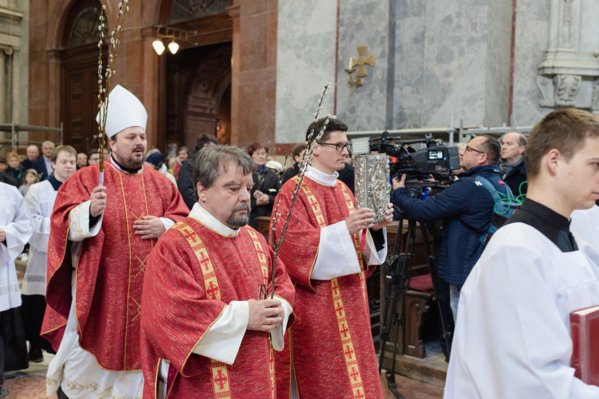 A barkaszentelés szertartása után a szentmisében a papnövendékek szkólája énekelte el a passiót, Krisztus szenvedéstörténetét. Erdő Péter bíboros homíliáját Török Csaba olvasta fel.