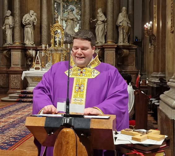 A szemináriumban szokás, hogy minden végzős atya kap egy keresztet. Ezen a kereszten van egy kis plakett, ami az esztergomi bazilikát ábrázolja. Erre rá van írva, hogy »Oremus pro invicem«, vagyis imádkozzunk egymásért. Ez a kereszt emlékeztet minden atyát, hogy közös a szolgálatunk, ahol hordozzuk egymást, és a ránk bízott lelkeket is. Bíboros atya a kórházban is imádságában hordoz bennünket, most mi is fohászkodjunk érte, az ő gyógyulásáért közös Gazdánkhoz és Mesterünkhöz.”