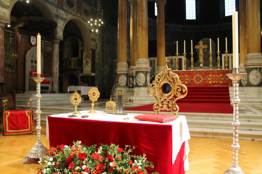 A vesperás és a szentmise része annak a nagyszabású rendezvénysorozatnak, amelynek keretében e héten bemutatják Nagy-Britanniában Becket Szent Tamás, Canterbury mártír érseke Esztergomban őrzött ereklyéjét.
