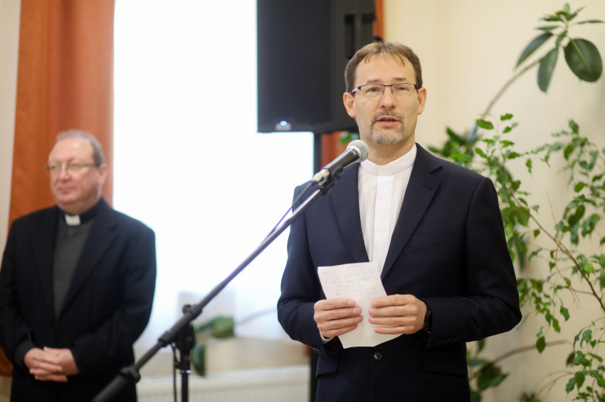 A megjelenteket köszöntve Czap Zsolt plébános a zsidókhoz írt levélből idézett: „Minden háznak van építőmestere; aki pedig a mindenséget alkotta, az az Isten” (Zsid 3,4). A templom búcsúján, Szent Erzsébet ünnepén Isten házát is ünnepeljük, de a mai napon egy másik ház is fontos szerepet kap. A templom a szentségek, a liturgia helye, de emellett szükség van olyan terekre is, mely a plébániai közösség más tevékenységeinek ad otthont. Ezt a feladatot tölti be a jövőben a Szent Erzsébet Közösségi Ház és Missziós Központ.