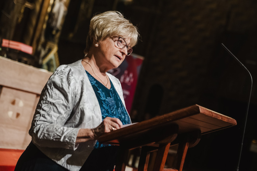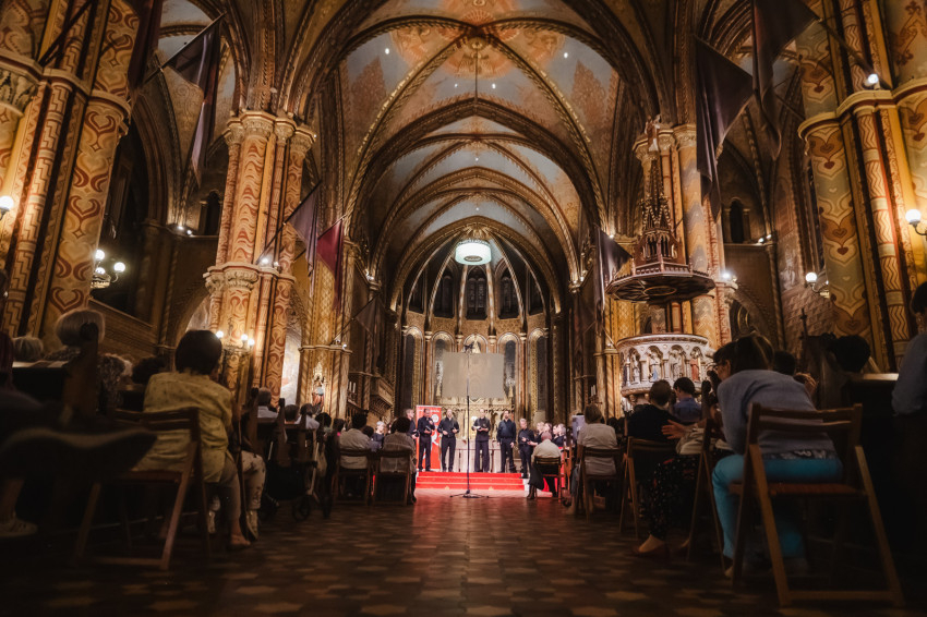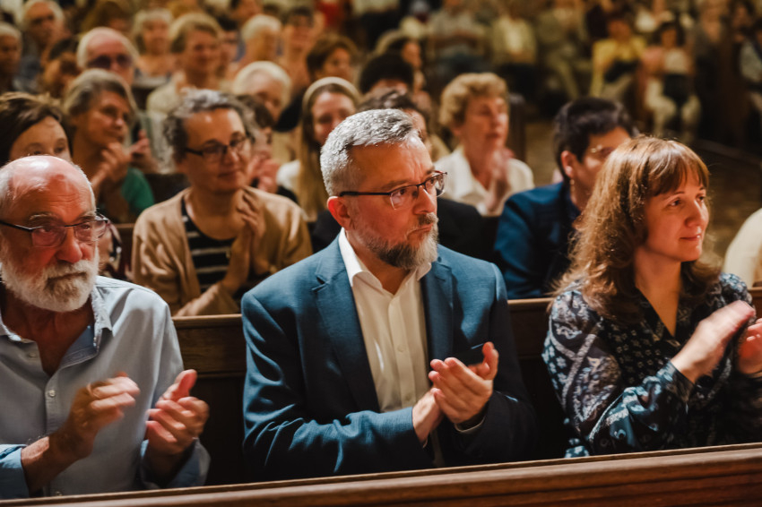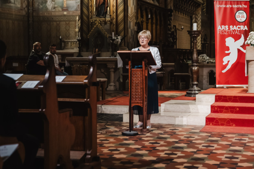 Amikor egy héttel ezelőtt XIV. Leó pápa szentté avatta Carlo Acutist, felidézte életét és szavait, köztük azt a meglátását, hogy boldog senki nem lehet attól, ha magára fókuszál, csak attól, hogy tekintetét felemeli és Istenre szegezi” – kezdte beszédét Nagy Zsuzsanna asszony. – A szakrális művészetet ugyanez jellemzi. Mindig a végtelenre mutat, felemeli a tekintetet, a gondolatokat, a lelkeket, lehetünk akár szabad téren vagy épített környezetben, világi vagy egyházi épületben, csendben vagy koncertteremben. A szakrális művészet légköre mindenkinek békét, vigasztalást nyújt, elhozza a szépséget, a megfoghatatlant.
