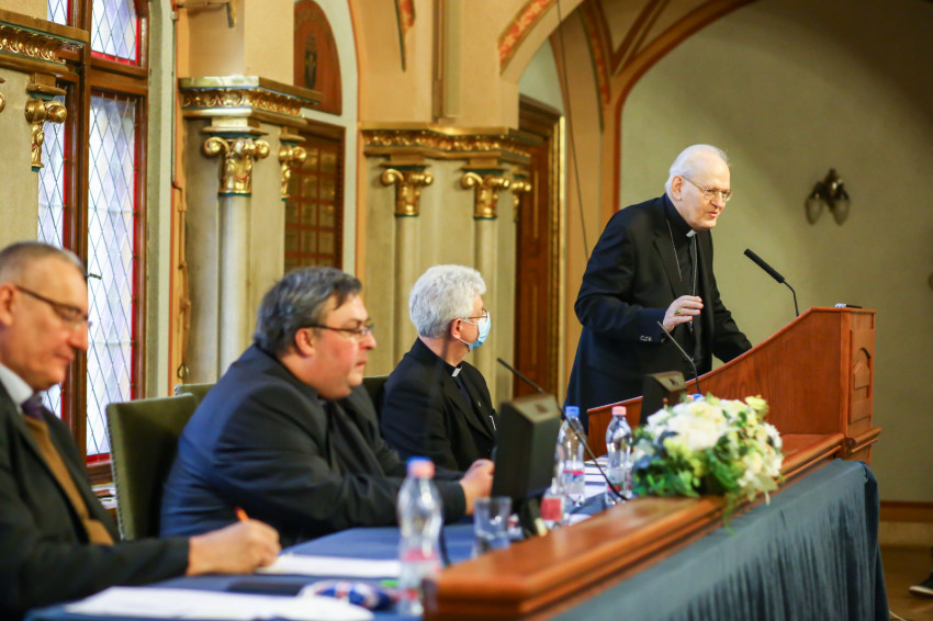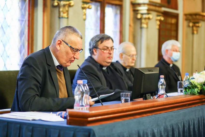 A könyvbemutató után szakmai konferenciát tartottak az időszerű kánjogi kérdésekről. Kuminetz Géza rektor A katolikus egyház és az anyagi javak. Jogbölcseleti és kánonjogi megfontolások címmel tartott előadást.