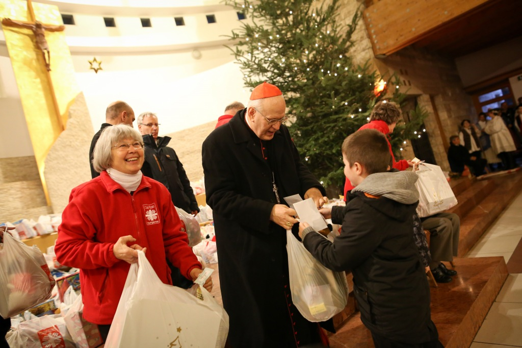 Az ünnepség végén az ajándékokat Erdő Péter bíboros; Mádl Dalma, a Katolikus Karitász jószolgálati nagykövete; Écsy Gábor, a segélyszervezet országos igazgatója, valamint Soltész Miklós egyházi, nemzetiségi és civil társadalmi kapcsolatokért felelős államtitkár adták át a gyerekeknek.