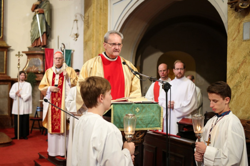 A szertartás elején elhangzott, hogy Szent Péter és Szent Pál az óbudai társaskáptalan védőszentjei, tiszteletük ebben a városrészben ezeréves múltra tekint vissza. Mivel Óbuda indentitásához hozzátartozik a németajkú kisebbség, a bevezetőt német nyelven is felolvasták.