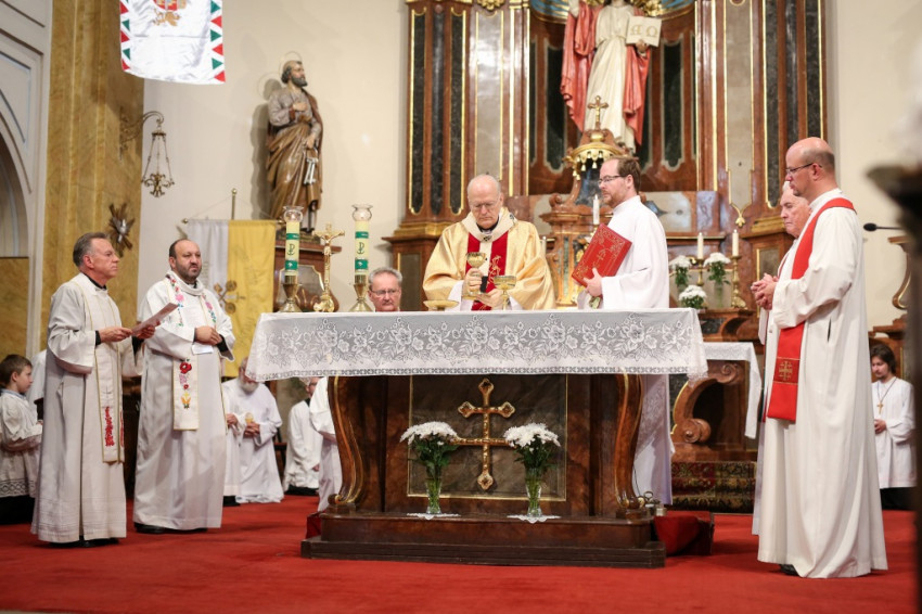 A szentmisén részt vett Varga Mihály nemzetgazdasági miniszter és Bús Balázs, Óbuda-Békásmegyer polgármestere is. A zenei szolgálatot a templom Albert Schweitzer kórusa végezte, Kenessey László karnagy vezényletével William Lloyd Webber Missa Princeps pacis című művét szólaltatták meg.