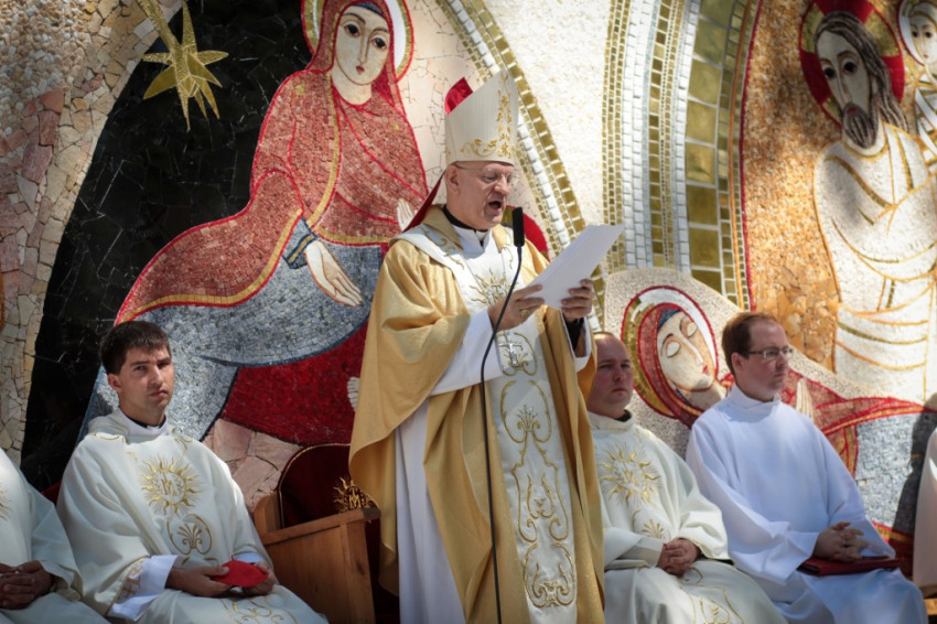 Erdő Péter bíboros szentbeszédében hangsúlyozta: Mária Krisztushoz hasonlóan egész személyével lépett be az örök dicsőségbe, ezzel megmutatva számunkra a megígért feltámadás fényét. A második Vatikáni Zsinat tanítása szerint Jézus édesanyja a mennyben már testében és lelkében megdicsőült, és az Egyház mintaképét és kezdetét jelenti. Az Egyházét, amely ugyanerre a beteljesedésre hivatott. Mária mennybevételének ünnepe azt mutatja meg, milyen lesz majd az Egyház.
