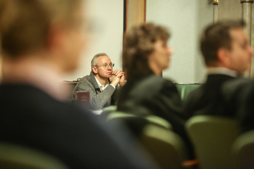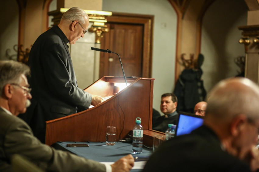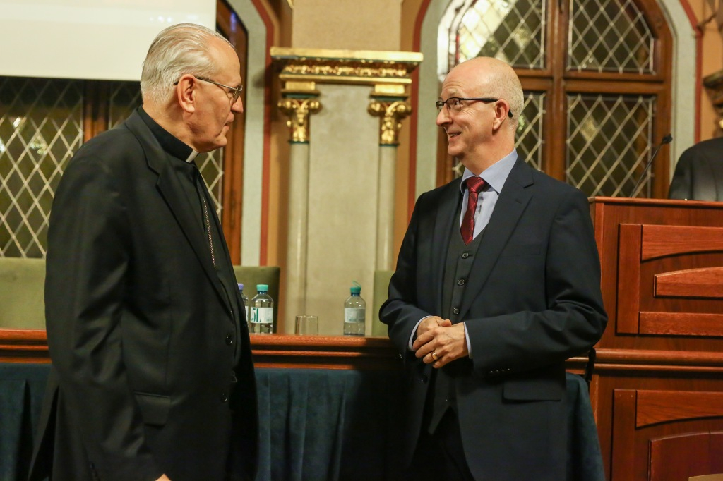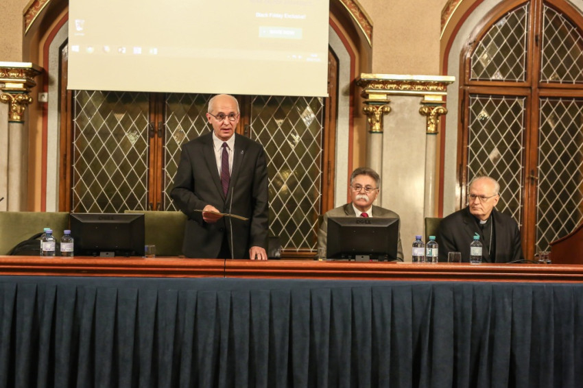 Az előadás kezdetén Sarbak Gábor, a Szent István Társulat elnöke köszöntötte az előadót és a megjelenteket. Bevezetőjében Erdő Péter bíboros megemlítette, mivel a 2018 októberében tartott püspöki szinódus témája a fiatalok, hit és hivatástisztázás volt, az eseményhez kapcsolódóan kötet készül, mely a papságra való alkalmasság kritériumait sorolja fel az Egyház történetének kezdetétől egészen napjainkig. A magyar bíboros arra kapott felkérést, hogy a „barbár” társadalmak idején érvényben volt feltételeket ismertesse.