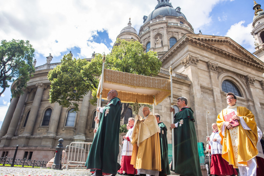 Ez az az imádás, ami nem állhat meg a templom falai között. Ő az a vízforrás, amelynek éltető ereje ki akar áradni az egész világra. „Minden forrásom belőled fakad” (Zsolt 87,7) – ezt olvastuk a Zsoltárok könyvében. Ez volt a budapesti Eucharisztikus Kongresszus jelmondata is. Ezért tartjuk ma a körmeneteket a szentségi Jézussal országszerte.