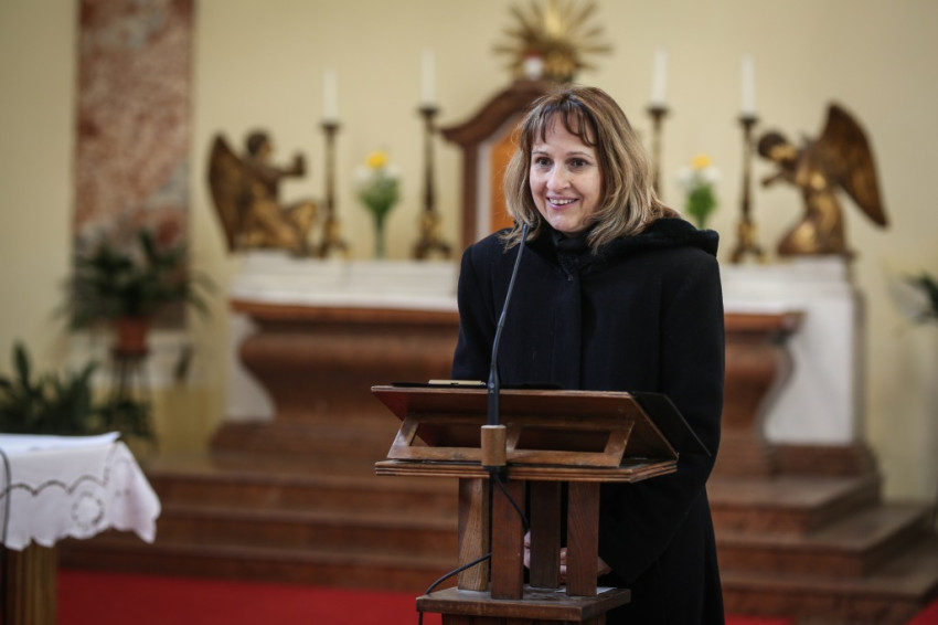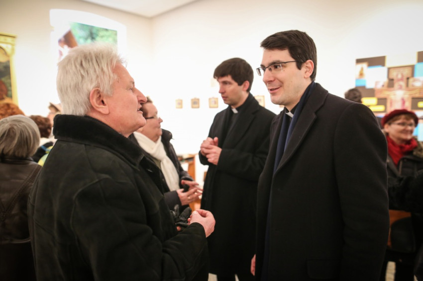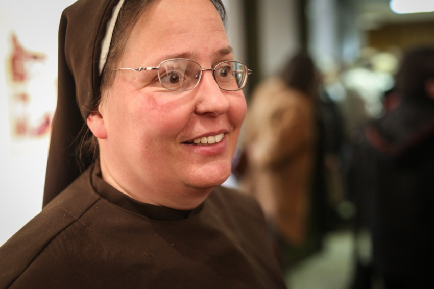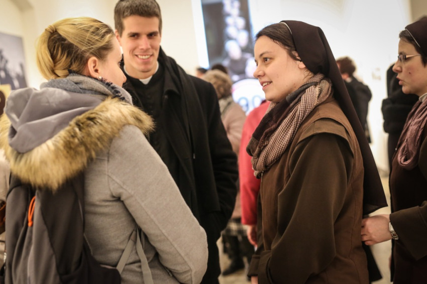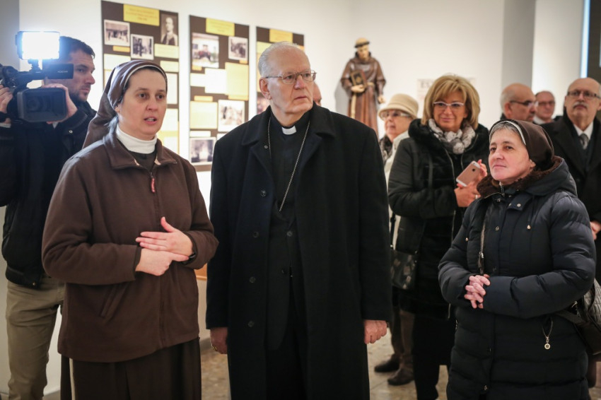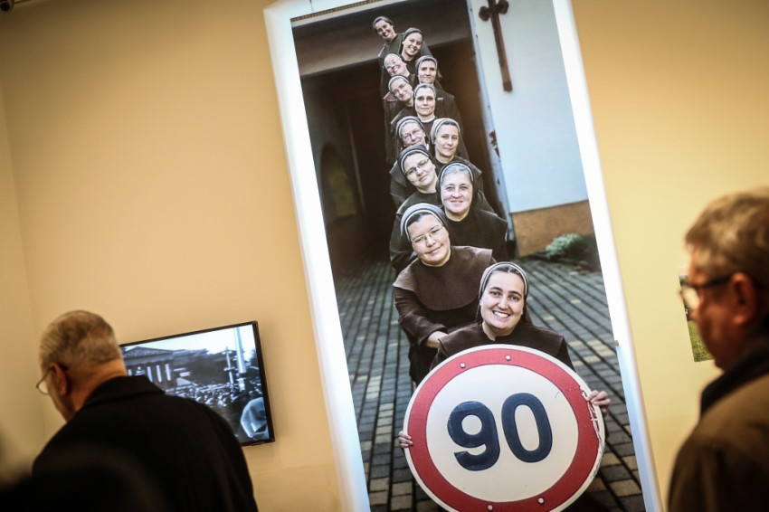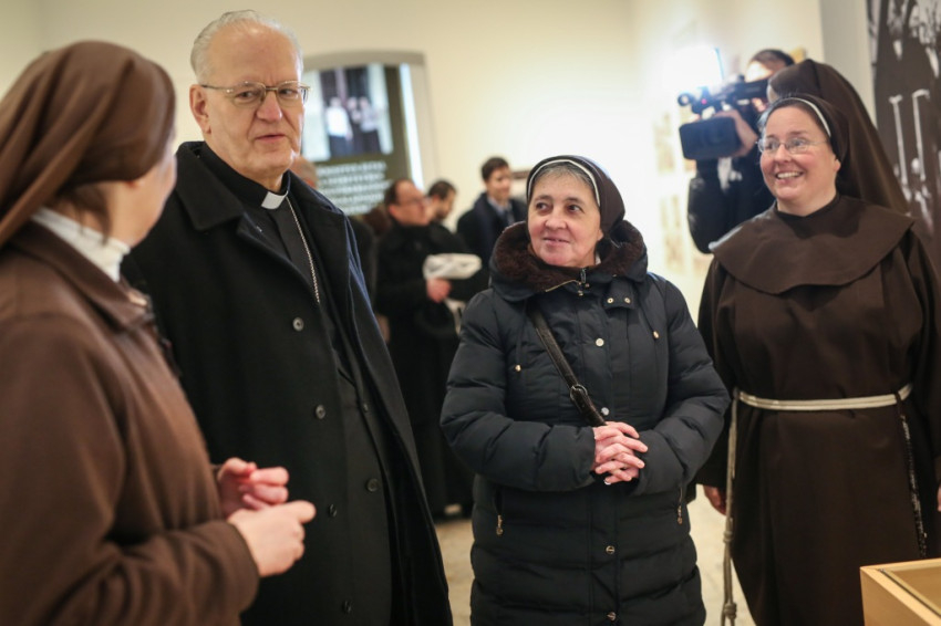A mise után rendhagyó kiállítás-megnyitó következik. A rend kilencven- és esztergomi megtelepedésük nyolcvanéves évfordulójára készült kiállítás elé szánt gondolatokat ugyanis nem a múzeumban, hanem itt hallgatjuk meg, tekintettel a múzeum termeinek szűkösségére. Először az igazgató, Kontsek Ildikó mond néhány szót a múzeum és a rend közreműködéséről, majd Kóródi M. Veronika általános főnöknő következik.