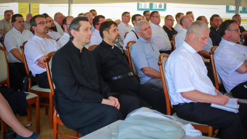 A program az érseki székház elé felállított rendezvénysátorban kezdődött, ahol Erdő Péter bíboros tartott előadást az 52. Nemzetközi Eucharisztikus Kongresszusra való készület jegyében. A gyakorlati szempontokat is felsorakoztató előadás sok fontos információval szolgált a lelkipásztoroknak, akik ezt követően kérdéseikre is választ kaphattak.