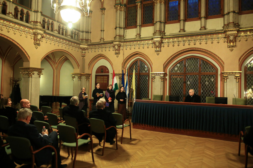 A rendezvény a Liszt Ferenc Zeneművészeti Egyetem Népzene Tanszékének Villő Énekegyüttese adventi műsorával kezdődött.