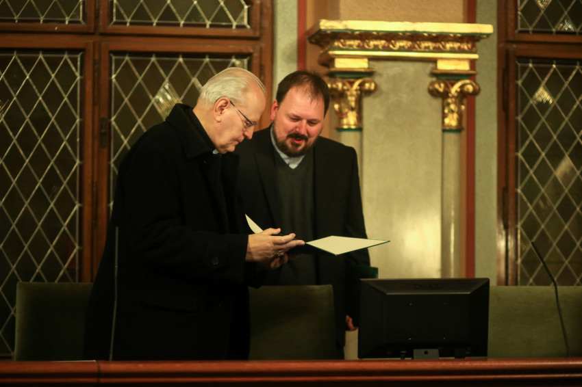 Ezt követően köszöntötték Erdő Péter bíborost, prímást, esztergom-budapesti érseket, a Szent István Tudományos Akadémia elnökét, aki idén ünnepelte hetvenedik születésnapját.