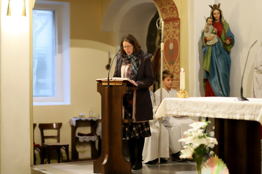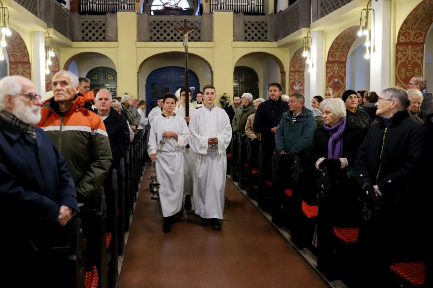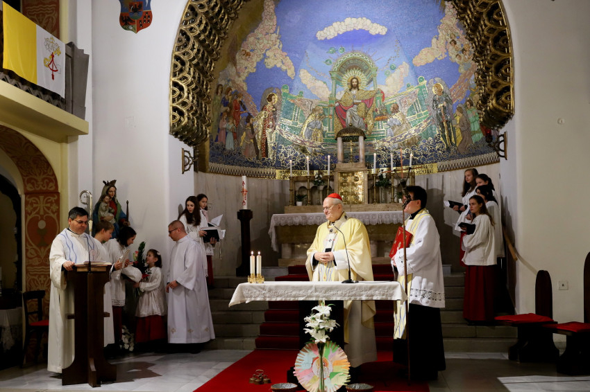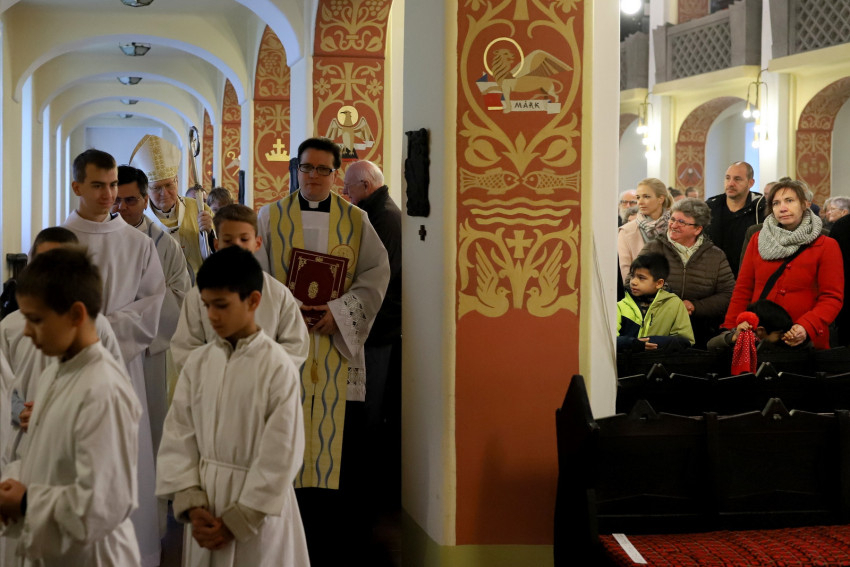 Depaula Flavio köszöntötte a főpásztort a város szívében lévő kis templomban. Tavaly az 52. Nemzetközi Eucharisztikus Kongresszus Kossuth téri szentmiséjének beszédéből idézett a bíborostól, majd kiemelte, hogy a kongresszus lelkülete tovább kell hogy éljen a szívünkben.
