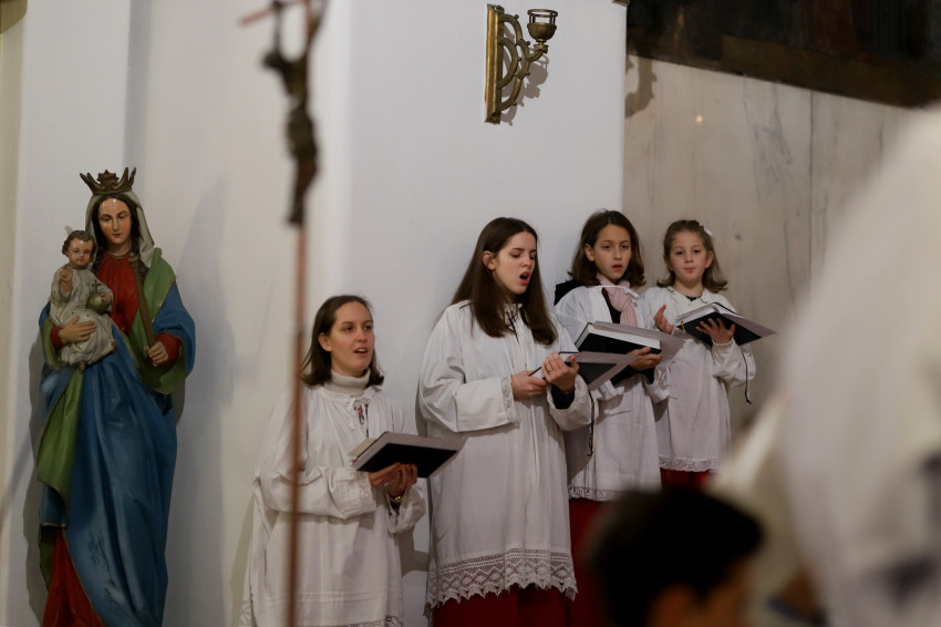 A szentmisén az orgonával kísért és a cappella énekelt gregorián művek mellett gitáros ének is elhangzott, valamint olyan klasszikus kórusművek, mint Palestrina Jesu Rex admirabilisa vagy Beethoven Isten dicsősége című négyszólamú műve.