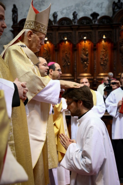 A június 13-i szertartásról a prefektus elmondta: az egyházi rend (papság) kiszolgáltatása szentmise keretében történik. Ennek során a jelöltek először ígéretet tesznek, hogy szolgálatukat Istennek tetsző módon fogják végezni. Majd – a Mindenszentek litániája közben – a felszentelendők földre borulnak, ami a teljes önátadás jele. A püspök ezután a fejükre teszi a kezét, ezzel adja át a papi hatalmat, majd következik a főpásztor ünnepélyes szentelési imádsága, amely a Szentlélek segítségül hívásával a szolgálat végzésére kér erőt a papságban részesülők számára. A szentelési liturgiához tartozik, hogy a püspök átadja az újonnan felszentelt diakónusoknak az evangéliumos könyvet. A szertartás további részében a felszenteltek dalmatikát és stólát (a diakónusok liturgikus öltözete) vesznek magukra.