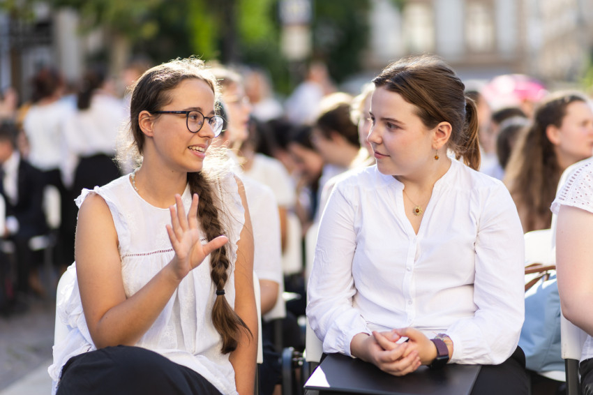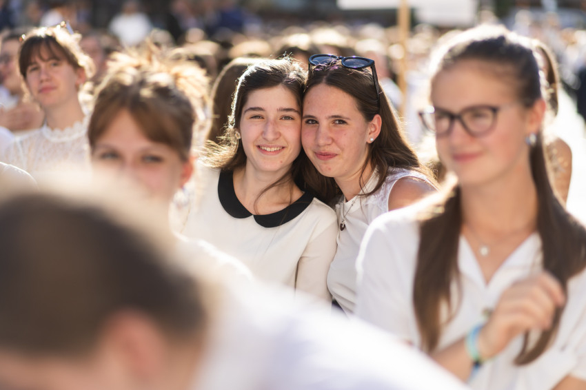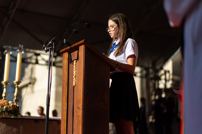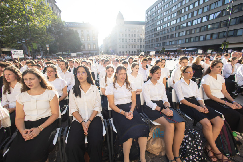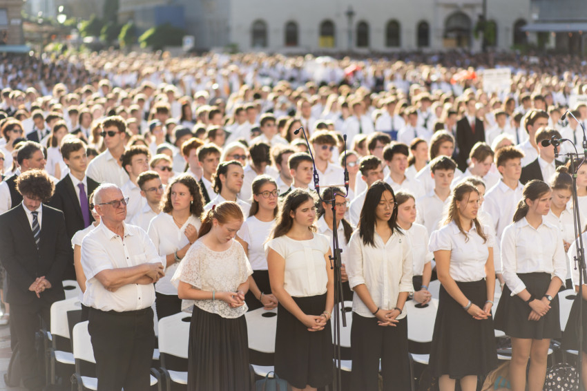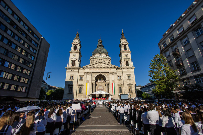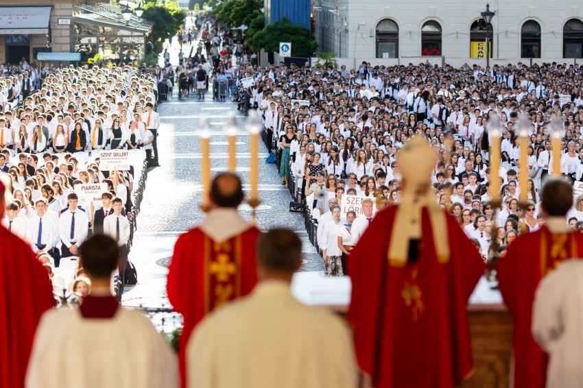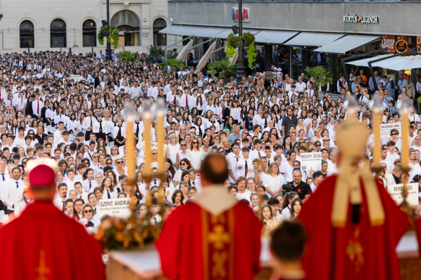 A bazilika előtti tér már délutánt megtelt: iskoláik ünneplő ruhájába öltözött diákok örültek újra egymásnak, és kérték a kegyelmet az előttük álló tanévben rájuk váró feladatokhoz.