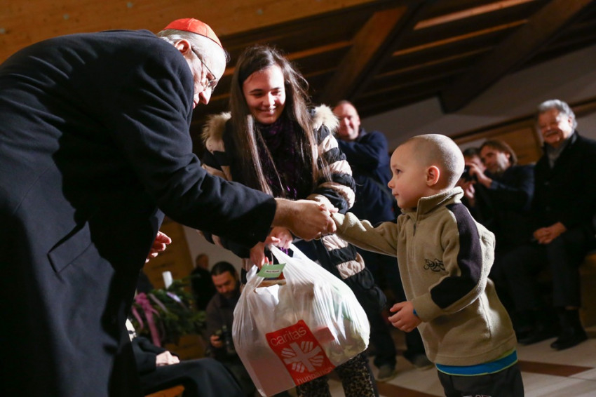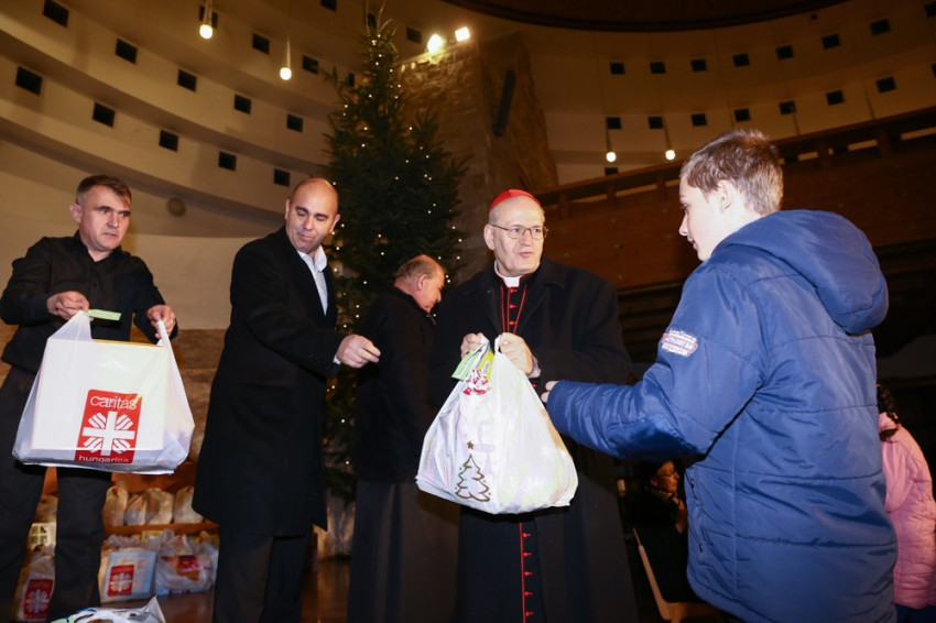 Écsy Gábor a Magyar Szentek templomában megrendezett ünnepség köszöntőjében utalt a „Gyermekek a gyermekekért” programra, amelynek keretében idén 15 ezer csomagot osztanak szét országszerte ezekben a napokban az egyházmegyei karitász csoportjai. Elmondta, hogy karácsony lényege az ajándékozás, amely a számunkra adatott legnagyobb ajándékban, Krisztusban nyeri el végső értelmét. Éppen ezért az örömhírt nemcsak tárgyi ajándékok által szerették volna megosztani, hanem egy mindenkinek szóló meglepetéssel is.