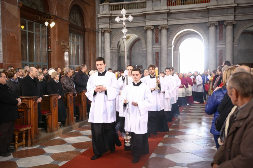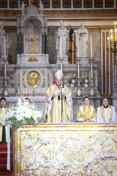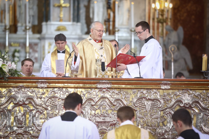 A húsvét ünnepe a választott nép történetében Isten szabadító szeretetének emlékezete volt. A Mindenható kiszabadította népét az egyiptomi rabszolgaságból, átvezette a tengeren és szabad életet ajándékozott neki. Jézus Krisztus – az ószövetségi ünnephez kapcsolódva – saját halálát áldozatnak tekintette, a húsvéti készület napján szenvedett kereszthalált. Jézus pászkája is átmenet a halálból az életbe, az emberi élet korlátai és nyomorúságai közül az örök boldogságba – hangoztatta a bíboros. Minket is örök életre és boldogságra hív, megváltó áldozatával a bűn rabságából Isten fiainak szabadságára vezet minket.