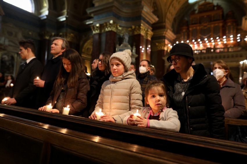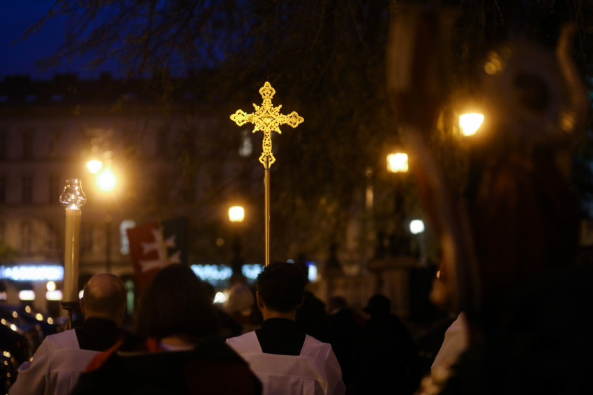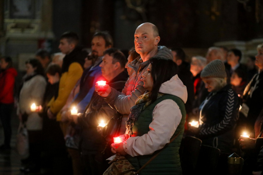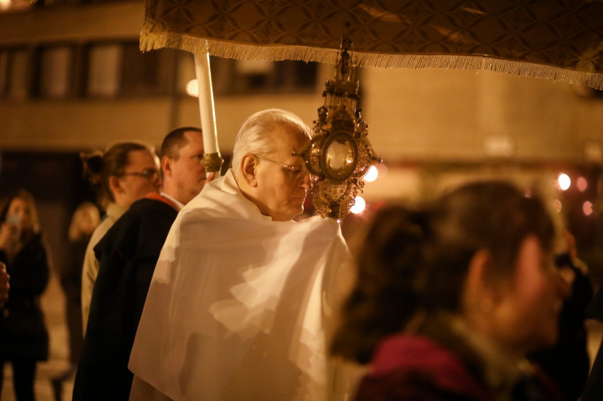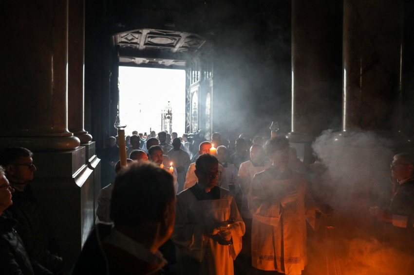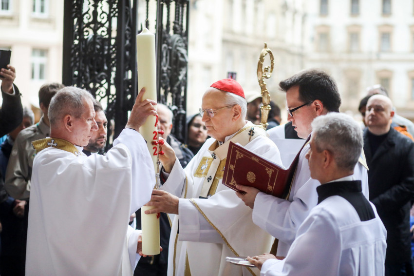 Ezt követően a szertartás a szentmise szokott rendje szerint folytatódott. A húsvét vigíliájának szertartása a feltámadási körmenettel zárult: a főpásztor vezetésével a hívők ünneplése kilépett a bazilika falai közül, és hirdette a világnak a feltámadás örömét ezen az esős, de a szomszédunkban zajló háború miatt is szomorú húsvéton.