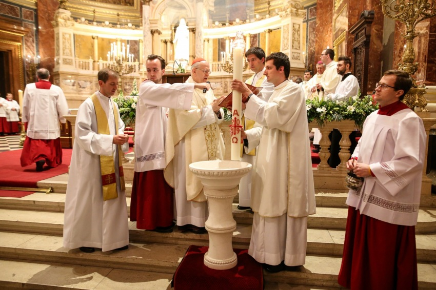 A szentbeszédet követően Erdő Péter megáldotta a keresztvizet, majd tizenhárom felnőttet keresztelt meg, ezt követően részükre kiszolgáltatta a bérmálás szentségét, a jelenlévő hívek pedig megújították keresztségi fogadalmaikat.
