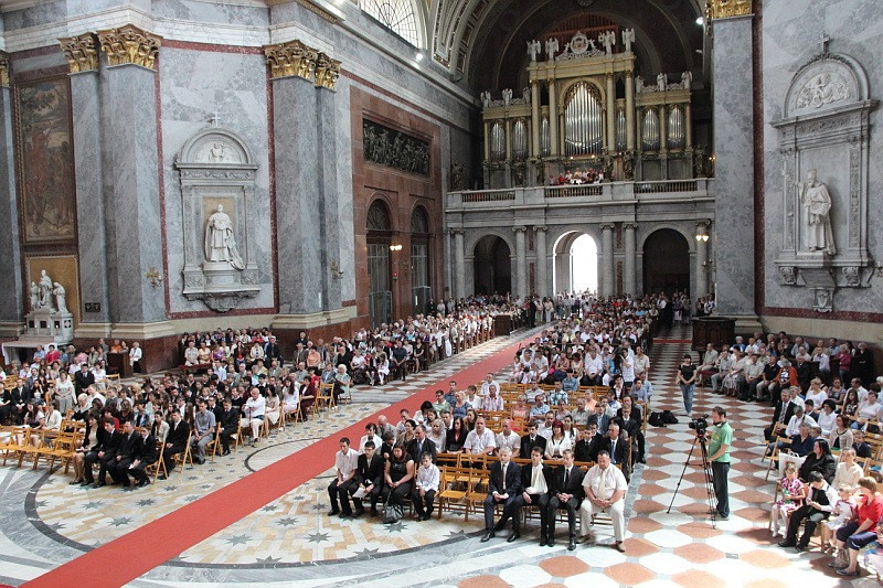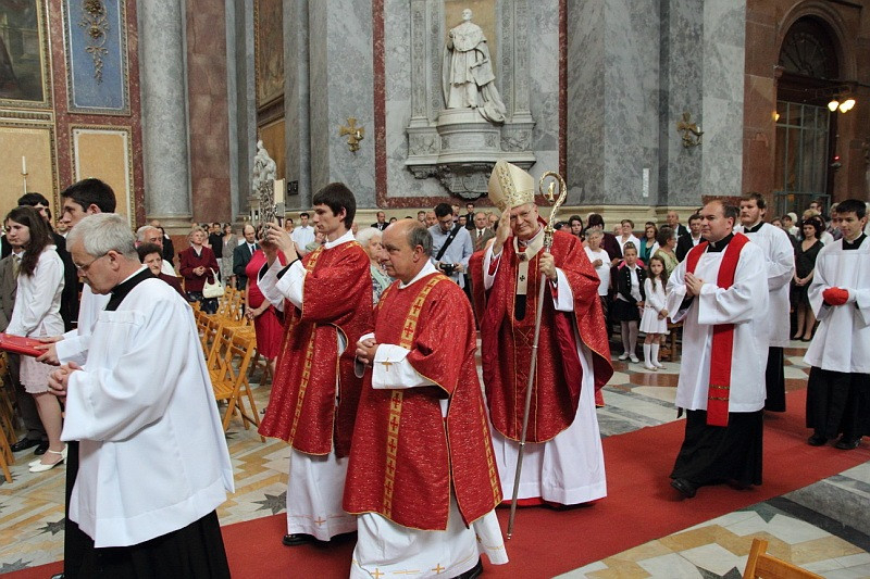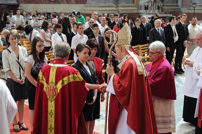 Az esztergomi bazilikában a hagyományoknak megfelelően Erdő Péter bíboros mutatott be szentmisét pünkösd vasárnapján. A szertartás keretében negyvennégy, Esztergomból valamint környékbeli települések plébániáiról érkezett fiatal és felnőtt részesült a bérmálás szentségében.
