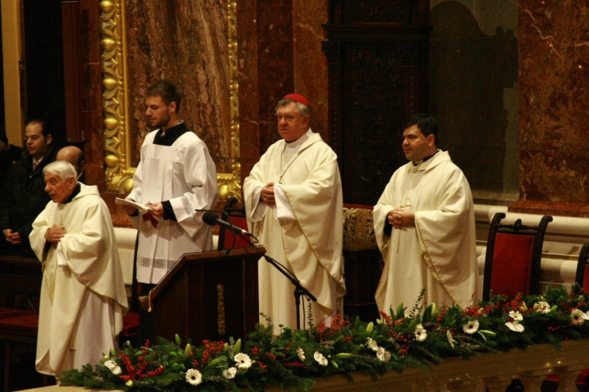 3. De hol ez a béke, kedves testvéreim, hol ez a béke ma, 2016 Karácsonyán, amikor a Közel-Keleten nem tudnak elhallgatni a fegyverek, amikor sötét szándékok mentén karácsonyra készülő ártatlan emberek sokaságát gyilkolják Európában is, amikor minden zűrzavar és fáradt tehetetlenkedés között a céltalanság és a cinizmus ijesztő képe rajzolódik ki a gondolkodó ember előtt? – Ez a béke a szívünkben van. És felbukkan a karácsonyfa alatt, a családok asztalánál, de még a kórházban, vagy a magányosak és idősek otthonában is, ha meggyújtják a gyertyát, ha rátekintenek a betlehemi képre, Szűz Máriával, Szent Józseffel, középen pedig a kis Jézussal, aki fényt, reménységet, igazi életet hozott a világba. Ha ezt a békét meg tudjuk tartani holnap is, holnapután is, a jövő évben is, ha merünk kedvesek lenni azok felé is, akik ezt talán meg sem érdemelnék, akkor rajtunk keresztül is a bűn és a nyomorúság minden akadályával szemben Isten legyőzhetetlen szeretete és békéje árad szét a világban. Ez a szeretet és béke töltötte el mindannyiunk szívét, ezt ajándékozza Isten népünknek és az egész világnak.