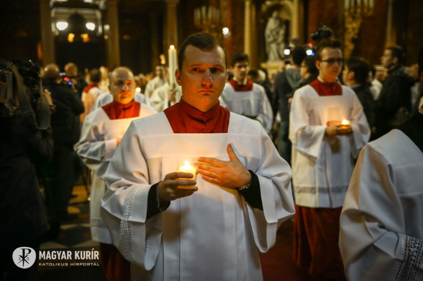 A húsvét vigíliai szentmisén Cserháti Ferenc és Snell György, az Esztergom-Budapesti Főegyházmegye segédpüspökei koncelebráltak.