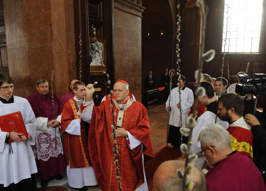Az Erdő Péter bíboros által virágvasárnapon az esztergomi bazilikában celebrált szentmise a barkák ünnepélyes megáldásával kezdődött, melyet Jézus jeruzsálemi bevonulására emlékező körmenet követett.