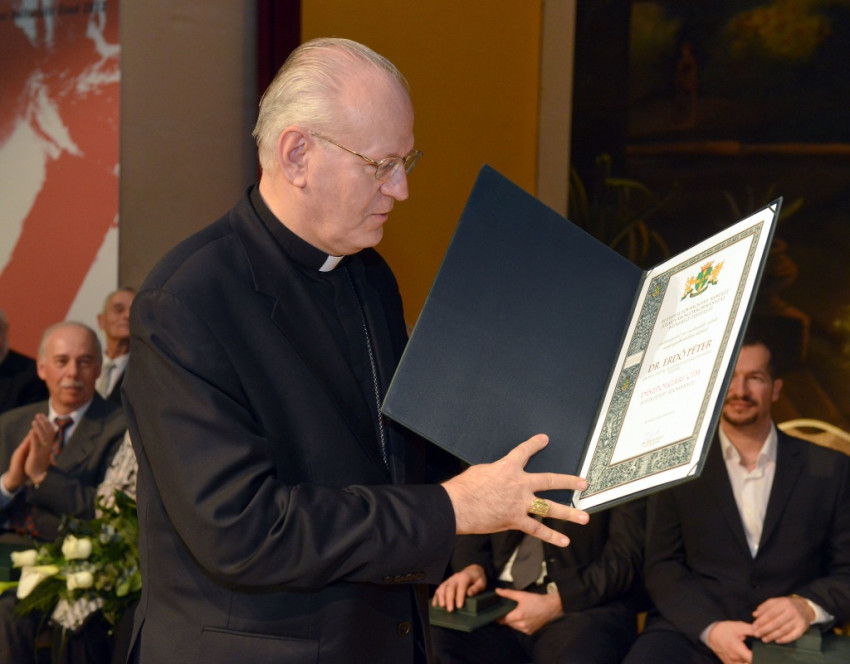 Erdő Péter bíboros pohárköszöntőjében elmondta: Nagy öröm számára, hogy a józsefvárosi díjátadókra éppen Szent József napján kerül sor. A kerület sajátossága, hogy itt van Budapesten a legtöbb katolikus plébánia. Azt is mondhatjuk, hogy ez a legkatolikusabb kerület. De van még egy különleges adottsága Józsefvárosnak, amely túlmutat a fejlődő oktatási és egészségügyi intézményeken és lehetőségeken, a kutatóközpontok kialakulásán és a kultúra számos értékén. Ez pedig az emberi tapasztalat, amely széles látókört tesz lehetővé. „Lehet, hogy a budai hegyekből szebb a panoráma, de a Józsefvárosból jobban látszik az egész ország” – hívta fel a figyelmet a bíboros, majd sok sikert és áldást kívánt a kerület minden lakójának.
