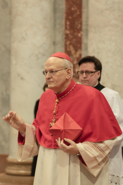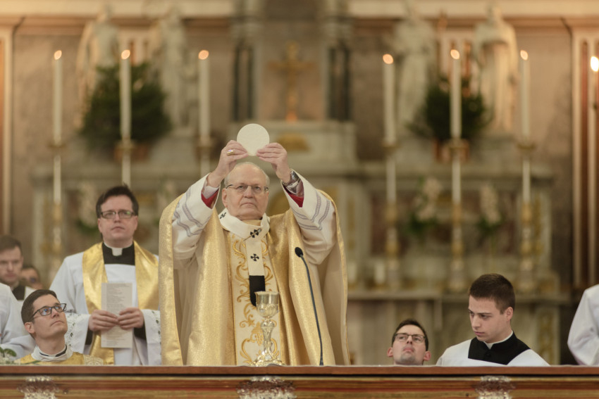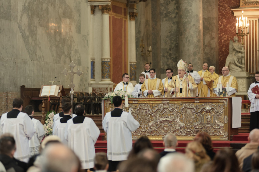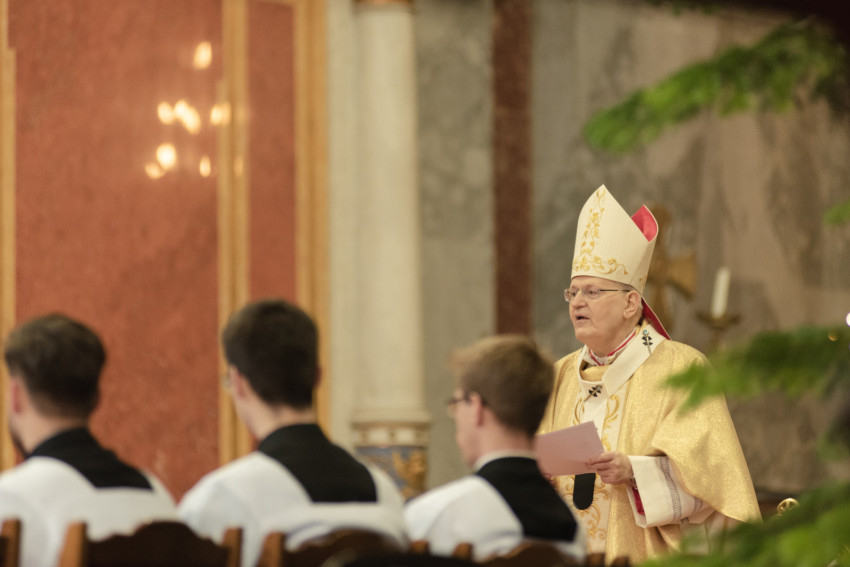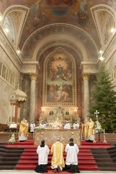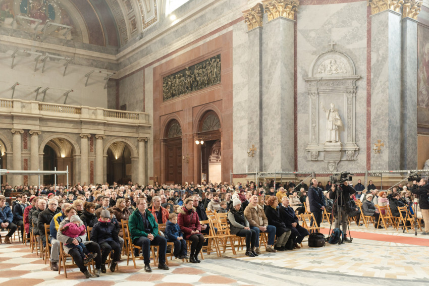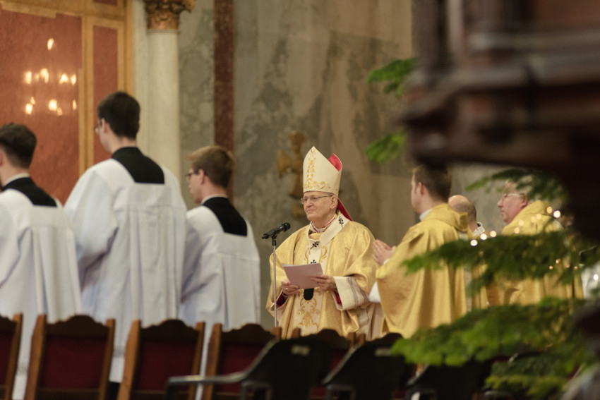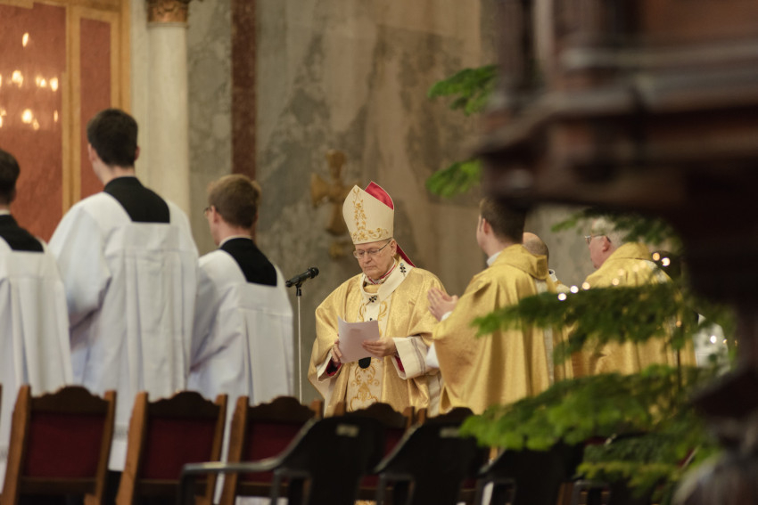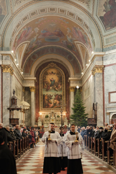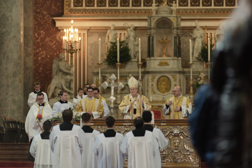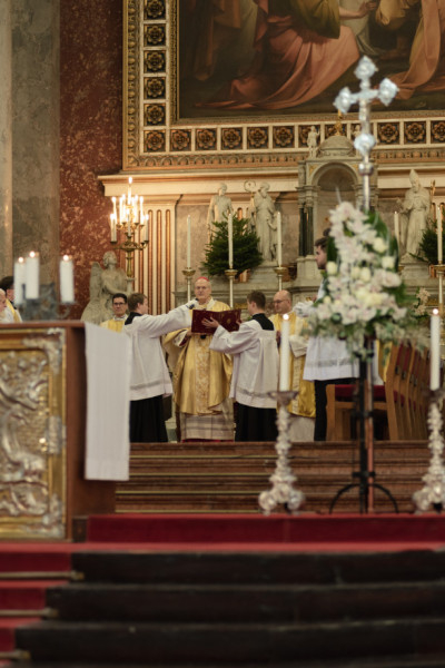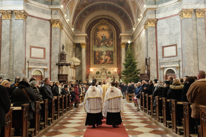 Nem tudjuk, mikor és hogyan kezdődött a világmindenség története, „de az Ige, akinek földi születésnapját ma ünnepeljük, már ott volt minden idő és minden korszak, minden világperiódus és minden teremtett létező előtt” – mondta a hívekkel teli bazilikában Erdő Péter bíboros, prímás.