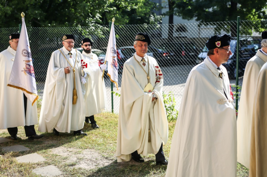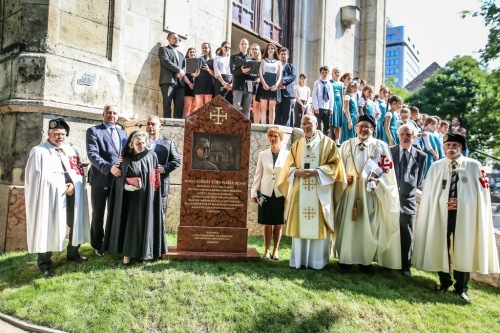 A szentmise után a kápolna kertjében került sor Csordás Eörs Mária emlékkövének megáldására. A 2 méteres, sóskúti márványból és bronzból készült sztélé Rieger Tibor Kossuth-díjas szobrászművész alkotása. Az ünnepségen Jungbert Béla, a Jeruzsálemi Szent Sír Lovagrend magyarországi helytartója elmondta, hogy az emlékkő a rend tagjainak adományaiból és az Emberi Erőforrások Minisztériuma támogatásával készülhetett el. Mint kiemelte, Csordás Eörsnek – aki a Jeruzsálemi Szent Sír Lovagrend koadjutor nagyperjele volt – nagy szerepe volt a Szent Sír-lovagok magyarországi visszatelepülésében. Fontos volt számára a fiatalok és a kispapok nevelése. Munkásságának középpontjában állt a kánonjog művelése, a magyarországi Katolikus Egyház megerősítése és a szentföldi keresztények támogatása.
