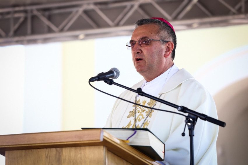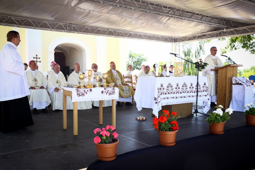 Veres András szombathelyi megyéspüspök mint vendéglátó köszöntőjében felidézte gyermekkora mondását, hogy egy újmiséért érdemes akár egy pár csizmát is elkoptatni, mennyivel inkább így van ez – folytatta a főpásztor – a mai centenárium alkalmával. Ezt követően a megyéspüspök felidézte Mindszenty József visszaemlékezését, mely a településhez, szülőházához kötötte: „Soha ki ne fakuljon emlékezetünkben az a ház, amely bölcsőnket ringatta”. Veres András köszöntőjének végén ünneplésre, hálaadásra és Mindszenty József boldoggá avatásáért való imádságra kérte a jelenlévőket.