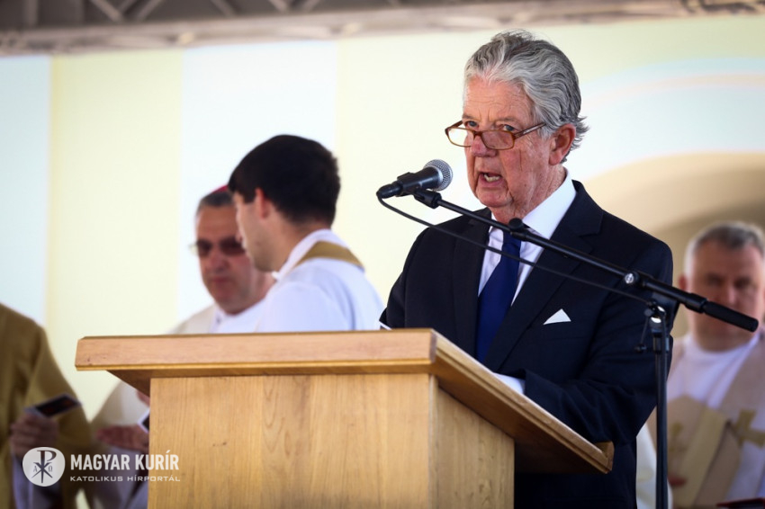 A szentmise záró áldása előtt az egybegyűltek Habsburg-Lotharingiai Mihály főherceg, a Mindszenty Alapítvány elnöke vezetésével Mindszenty bíboros boldoggá avatásáért imádkoztak: „Istenünk, te Mindszenty József bíborost arra választottad ki, hogy az üldöztetés idején mindhalálig hűséges főpásztor legyen: az igazság és a szeretet tanúságtevője. Hívő néped örömére add meg, kérünk, hogy őt mielőbb Egyházunk szentjei között tisztelhessük. Krisztus, a mi Urunk által. Ámen.”