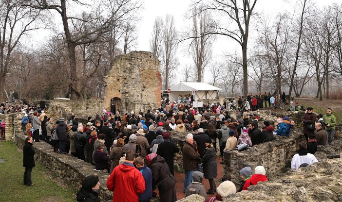 A domonkos kolostor romjainál tartott szentmisén nagy számban vettek részt hívek, a katolikus oktatási-nevelési intézmények diákjai, köztük a Pannonia Sacra Katolikus Általános Iskola, a Szent Gellért Katolikus Általános Iskola és Gimnázium, valamint a Szent Margit Gimnázium oktatói, diákjai és szüleik.